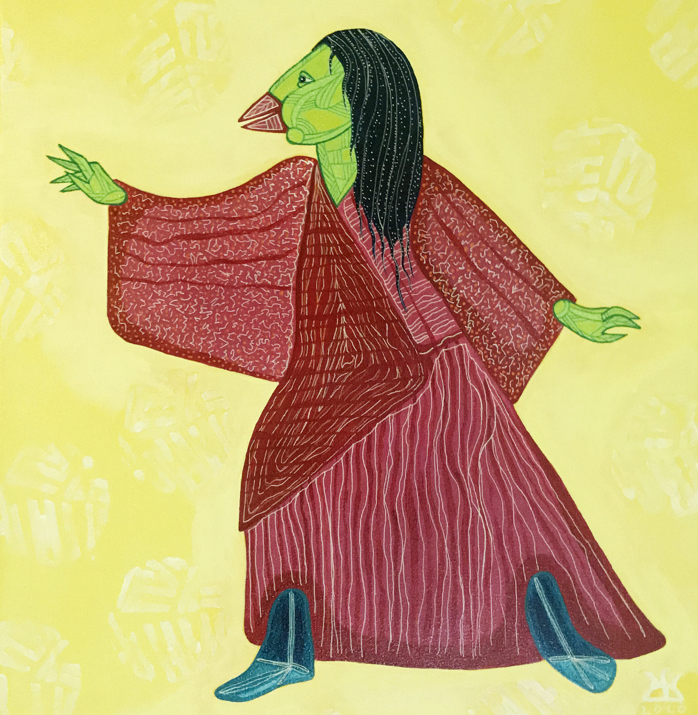 Christine Sioui Wawanoloath travaille en art visuel et en littérature depuis plus de 50 ans. Étant Wendat et Abénakise, ces deux cultures ont toujours exercé une grande influence sur sa démarche artistique. Elle s’inspire de leur mythologies et de leurs langues. Christine utilise différentes techniques dans son processus de création, dont la peinture, l’encre, le numérique, le collage et l’étampe. Elle fabrique aussi des sculptures, des marionnettes et des masques par assemblage. De plus, elle a écrit des contes, des articles, des pièces de théâtre et de la poésie.